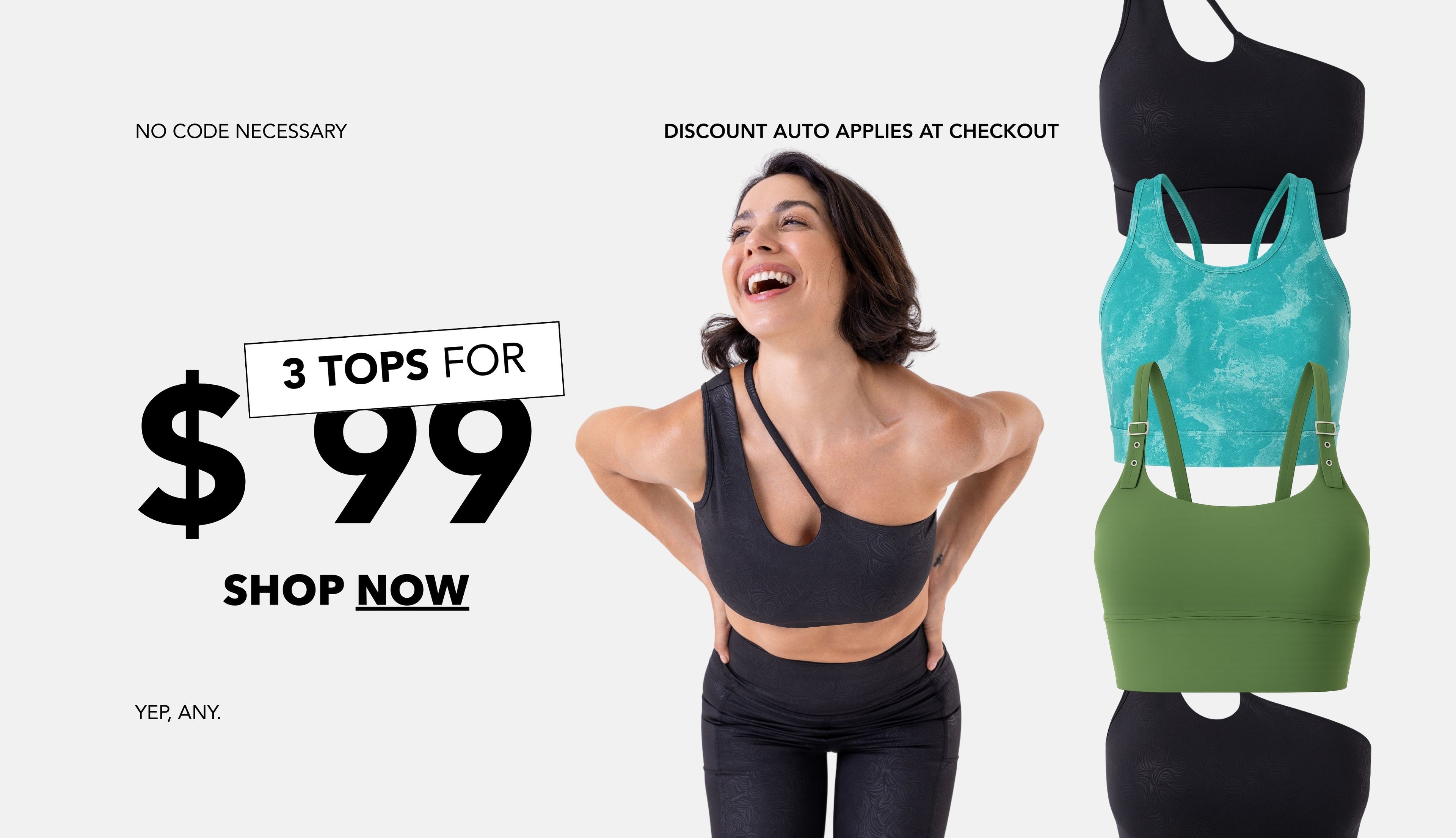 Pick ANY 3 Bra Tops for just $99 — no code needed*